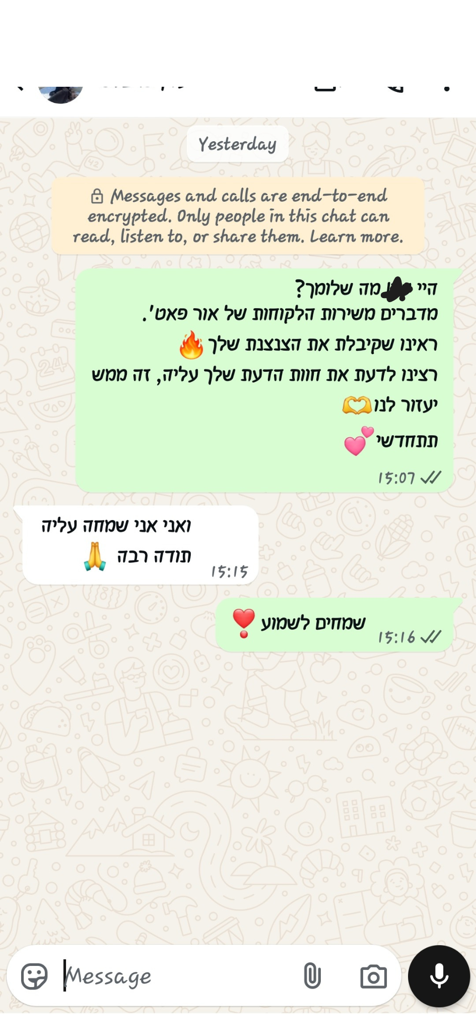 בלחיצה על הסימון של הוואטצאפ בצד המסך תועברו לצאט עם נציג, ניתן לפנות גם במייל-ohrpath.service@gmail.com