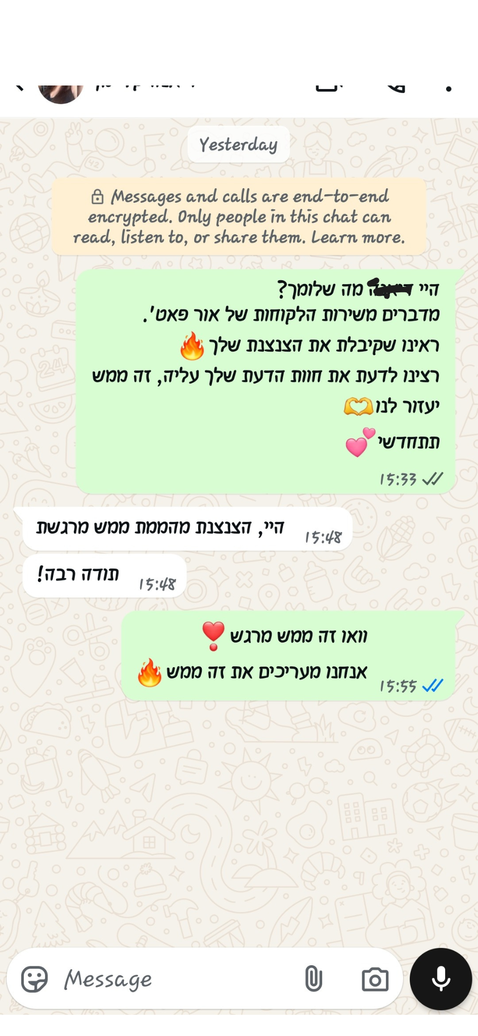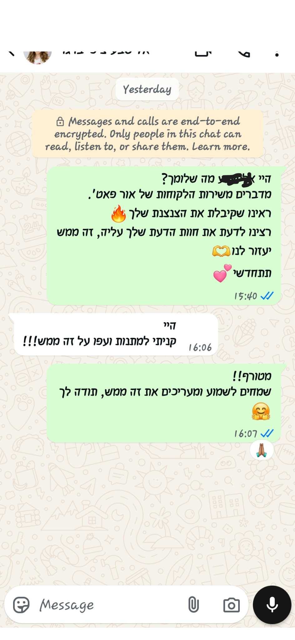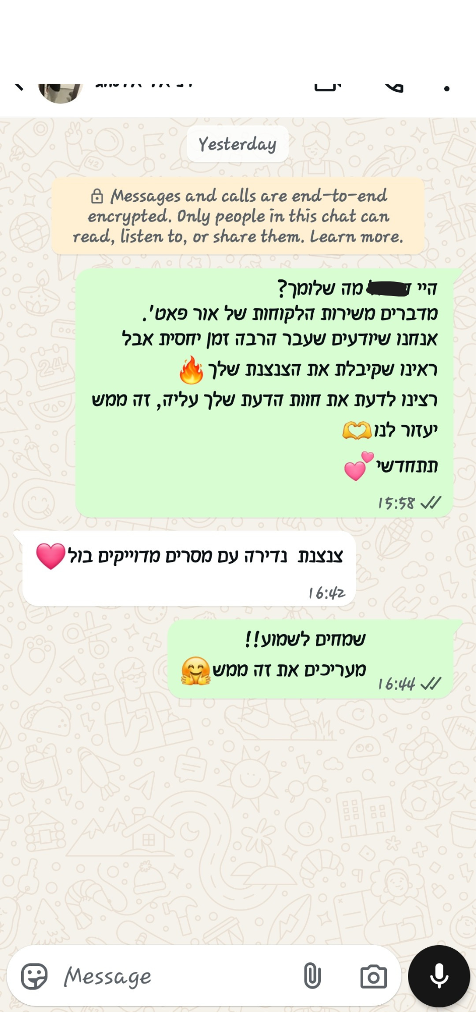 פשוט תלחצו על האייקון של הוואצאפ באתר וכתבו לנו "ביט" – אנחנו נשלח לכם מספר להעברה פרטית!