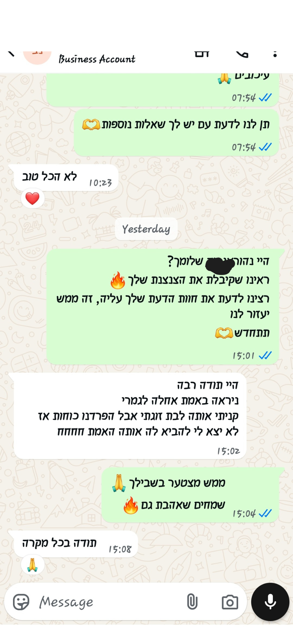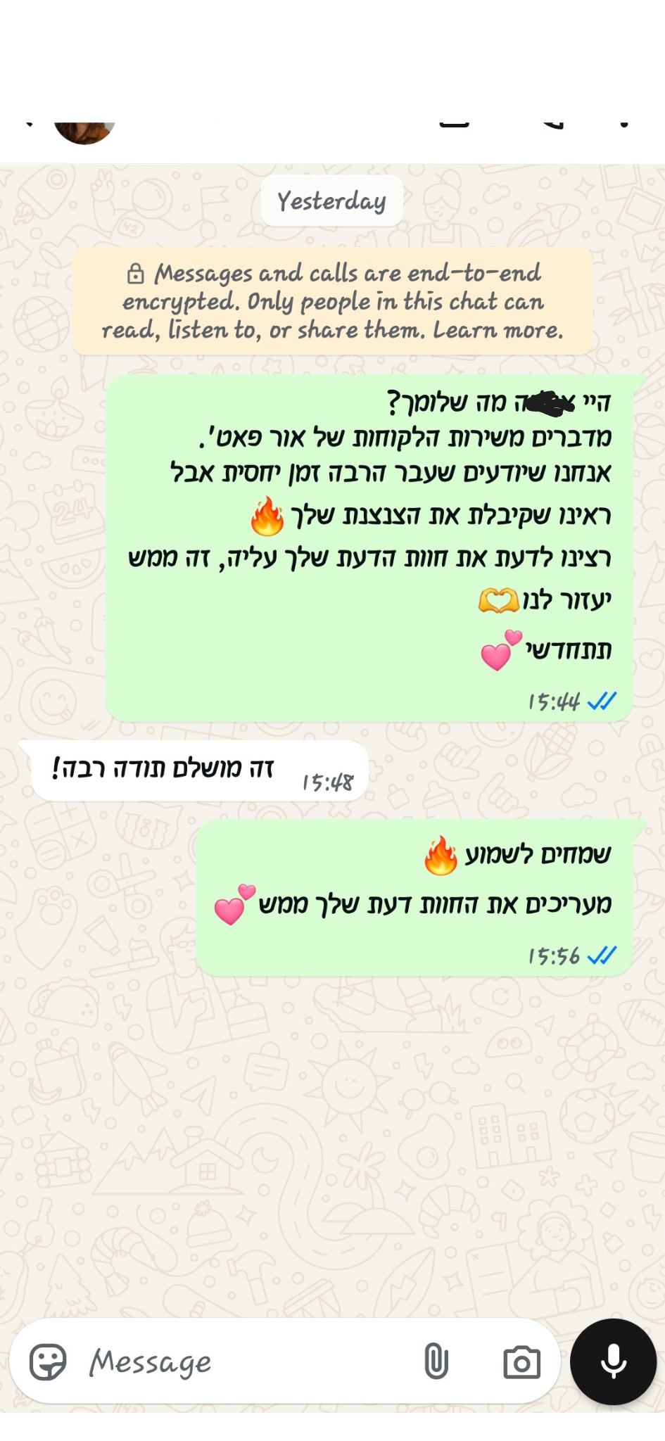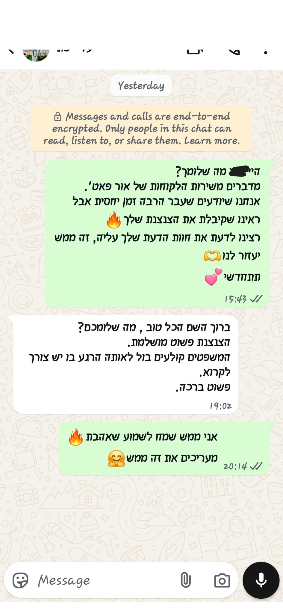 פשוט תלחצו על האייקון של הוואצאפ באתר וכתבו לנו "ביט" – אנחנו נשלח לכם מספר להעברה פרטית!