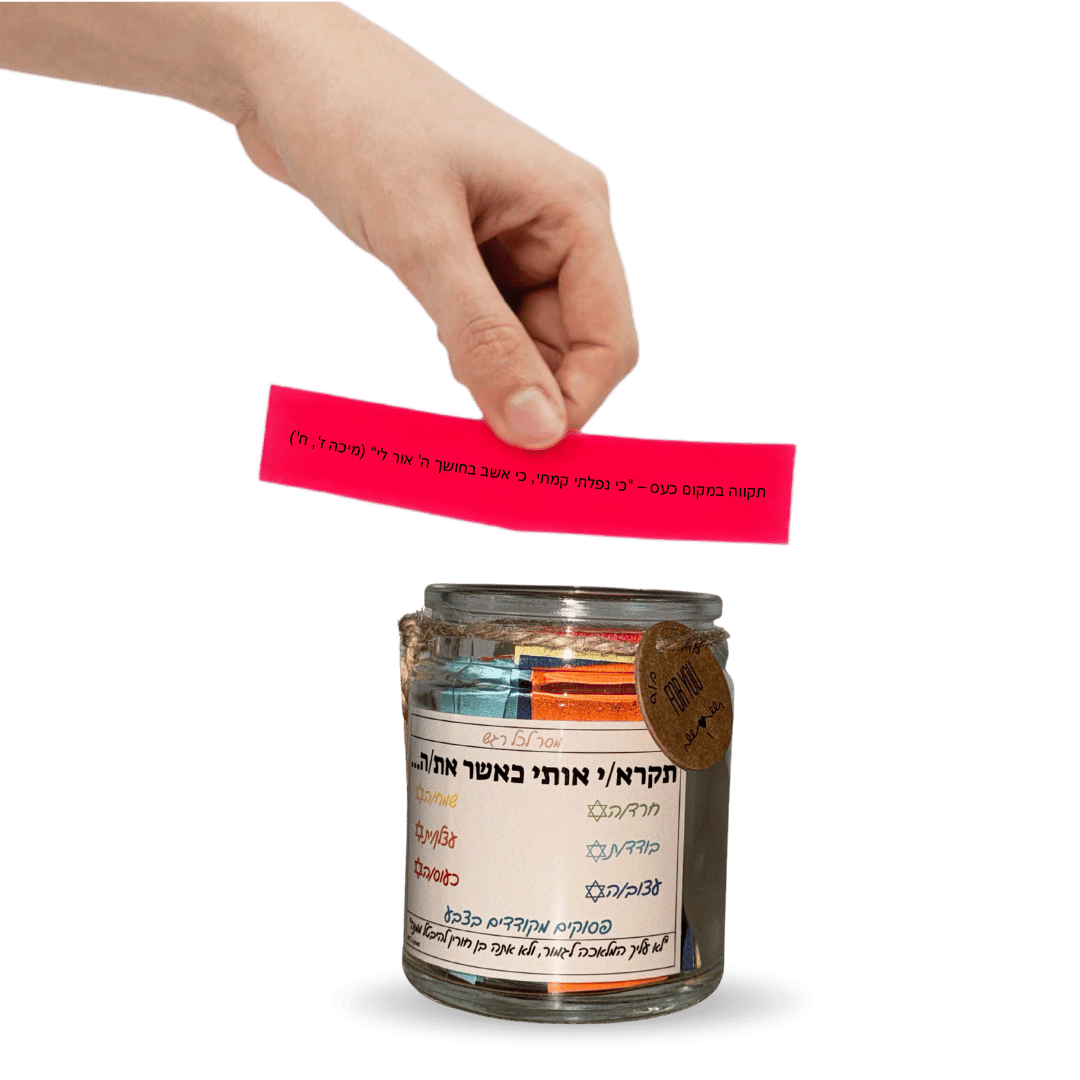 בזמן שאתם מחפשים תשובה, הכוונה או חיזוק קטן להמשך היום – צנצנת הפסוקים מחכה לכם עם המילים המדויקות שאתם צריכים לשמוע בול בשבילכם.
