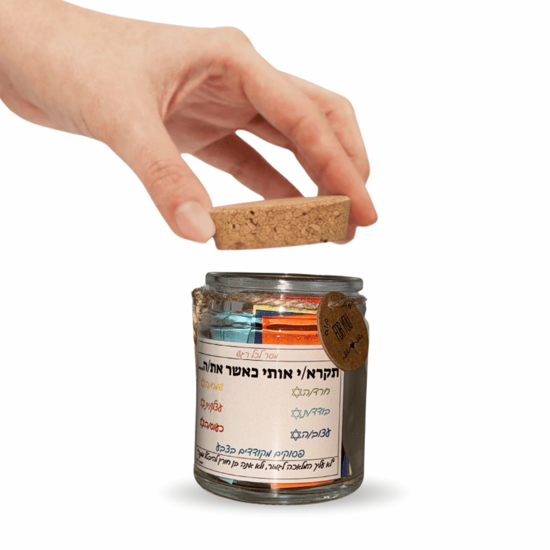 כמה פעמים קיבלתם או נתתם מתנה שהרגישה… חסרת טעם? צנצנת הפסוקים היא מתנה שתמיד נשארת קרובה ללב, נפתחת שוב ושוב, וכל פעם מעניקה כוח והכוונה מחדש.